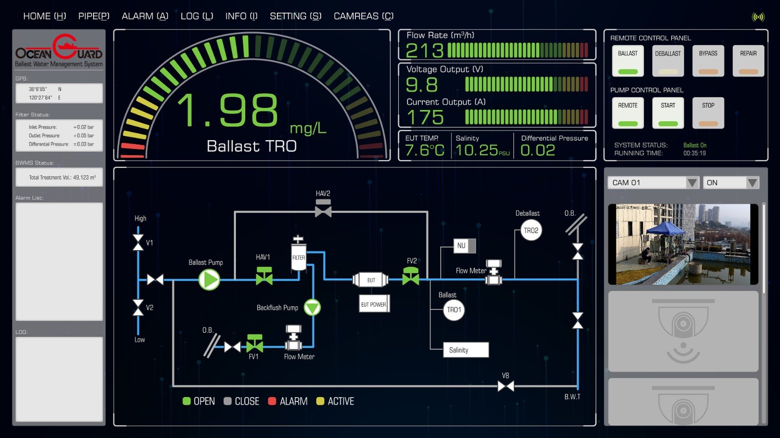 海洋衛(wèi)士?壓載水管理系統(tǒng)具備遠(yuǎn)程控制功能,可與海德威智慧集成平臺(tái)實(shí)時(shí)互通,實(shí)現(xiàn)云端數(shù)據(jù)采集、系統(tǒng)操作與運(yùn)行狀況診斷。